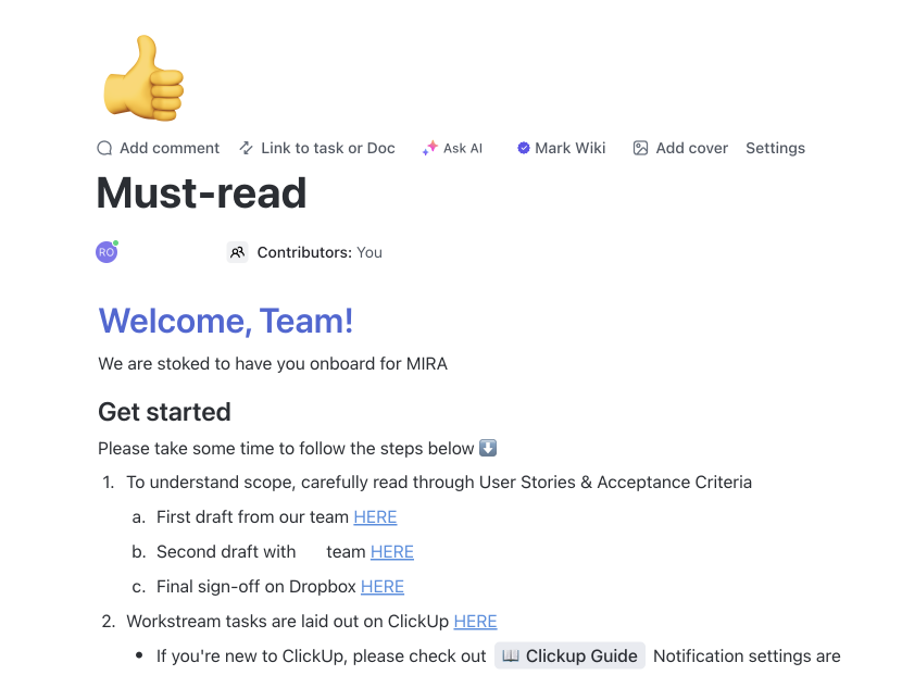 Once we received the green light from IT, we prepared a step-by-step guide to onboard users. I created a task as well with checklists to familiarize the team with the key features of the platform.